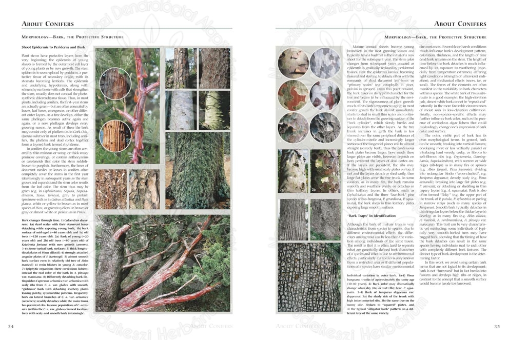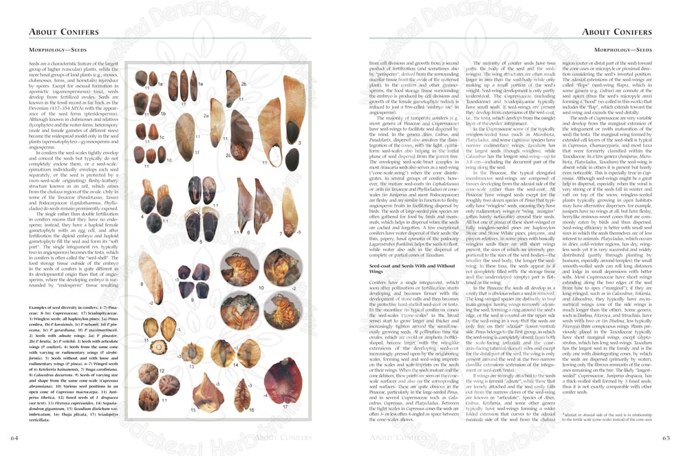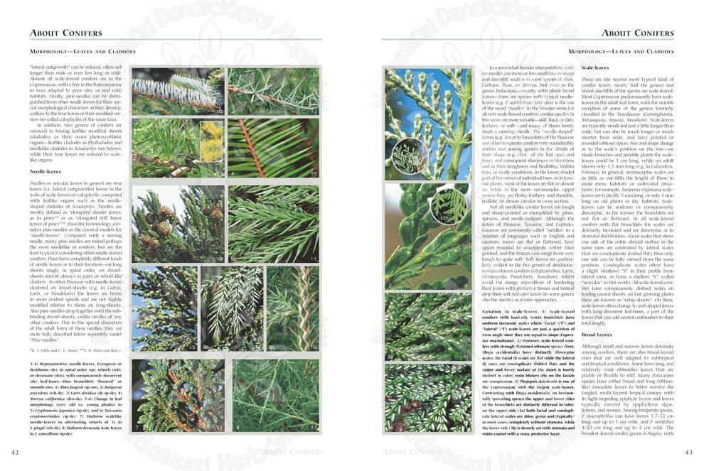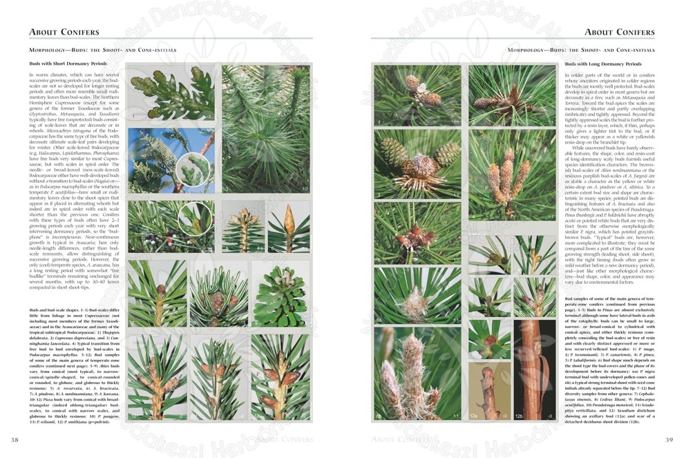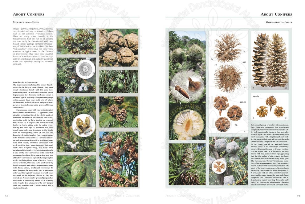 Conifer morphology deals with all main characters of conifers in 6 subchapters (habit, bark, buds, foliage, cones, and seeds), each richly illustrated by photographs and drawings.