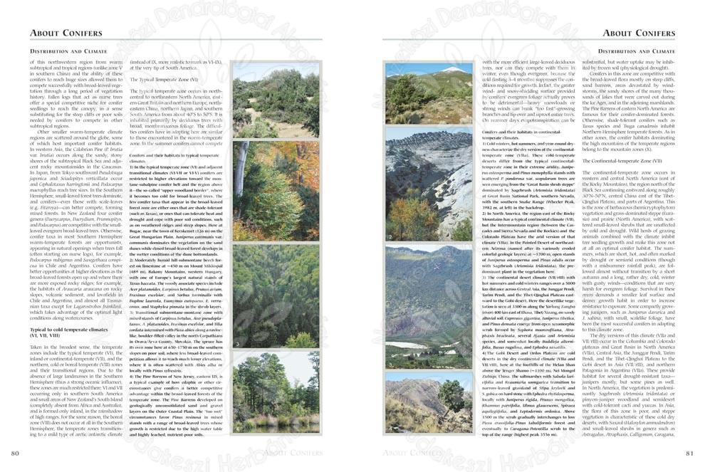 Distribution and Climate presents the scientific basis of the temperate-zone climate and flora on which the selection of conifers in this work is based. A broad overview of floristics and conifer distribution is given, along with a discussion of temperate vs. tropical conifers as delimited in this work.